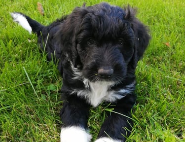 L’AussieDoodle est un croisement entre le Berger Australien et le Caniche Royal, reconnu pour son intelligence, son attachement à la famille et son tempérament équilibré. Ce mélange harmonieux donne un chien vif, attentif et capable de douceur, qui s’adapte bien à la vie familiale lorsqu’il est bien encadré.